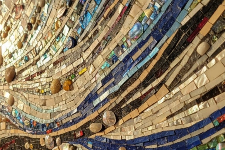 Chaque mosaïque en pierres naturelles est une rencontre entre matière, lumière et émotion. Selon l’heure du jour ou la source d’éclairage, les reflets changent, les teintes s’animent, la création respire.